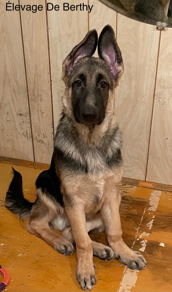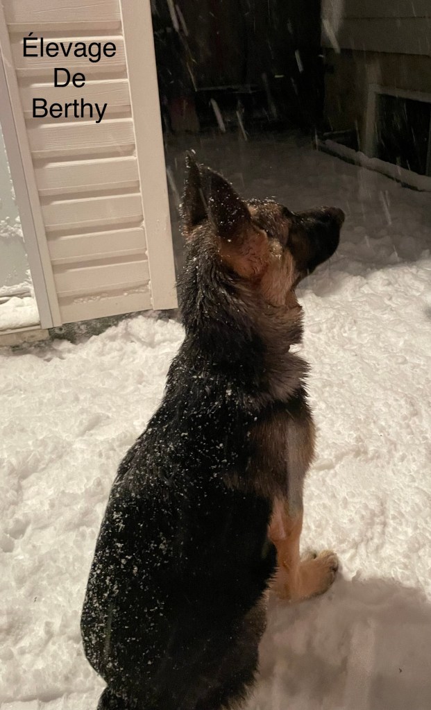 There are two males available of this beautiful sire: GCH CAN FV/MV Timberline’s Dust Bowl Dance « Archie » with our bitch De Berthy Hydra Luz.